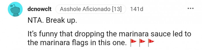 "It’s funny that dropping the marinara sauce led to the marinara flags in this one."