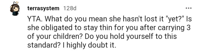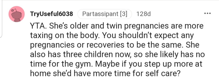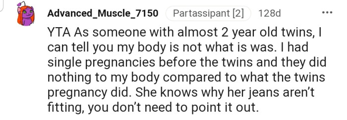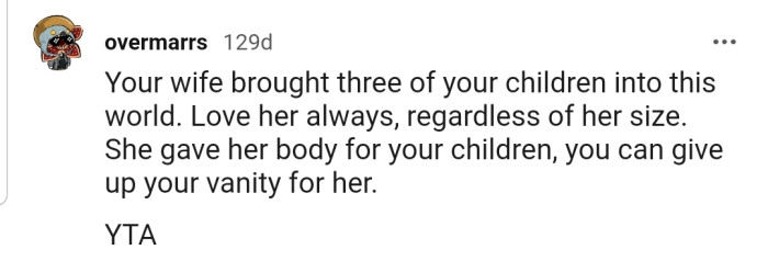 Reddit.comOP's wife gained some weight after giving birth to their twins