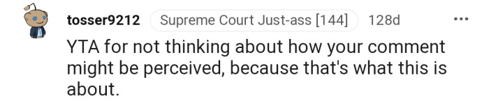 "YTA for not thinking about how your comment might be perceived."