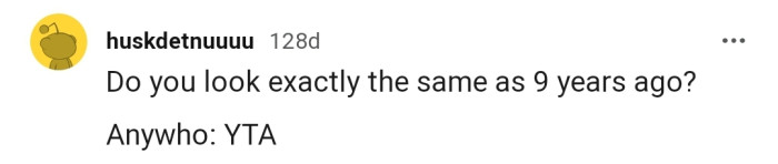"Do you look exactly the same as 9 years ago?"