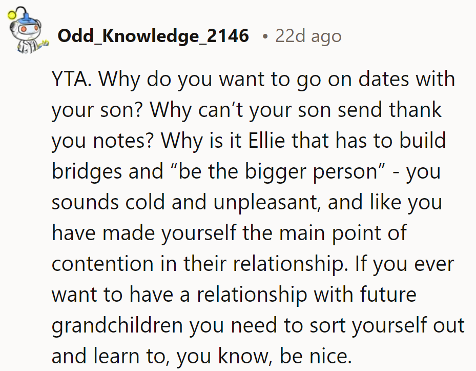 Ellie has made little effort to connect with OP, even delaying a birthday dinner by claiming to feel sick.