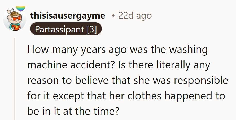 "Blaming Ellie for the washing machine incident? Sounds like a spin cycle of accusations."