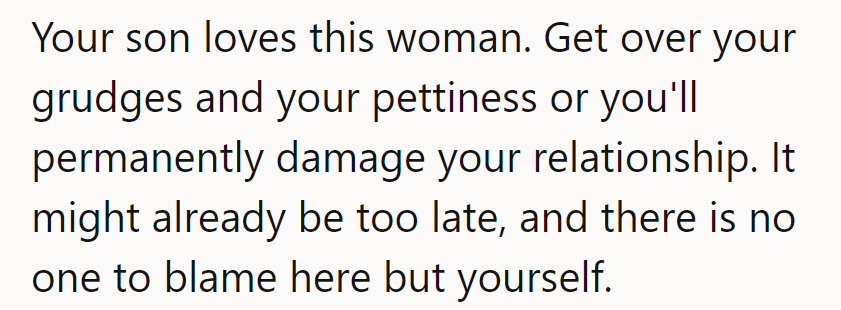 However, her son's reaction underscores the complexity of such situations, revealing the tension between parental input and adult independence. This narrative opens up a conversation about the limits of parental advice and the importance of supporting one's children, even when their choices diverge from parental expectations. It's a reminder that while navigating these relationships can be challenging, respect and understanding should guide the way forward.