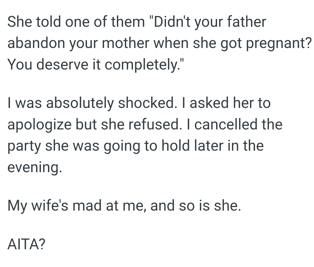 Redditors couldn't help but ask these questions as the OP's story was missing some details. The OP could have just corrected her rather than cancelling the party.