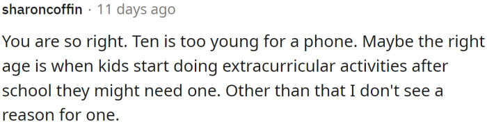 "Ten is too young for a phone."