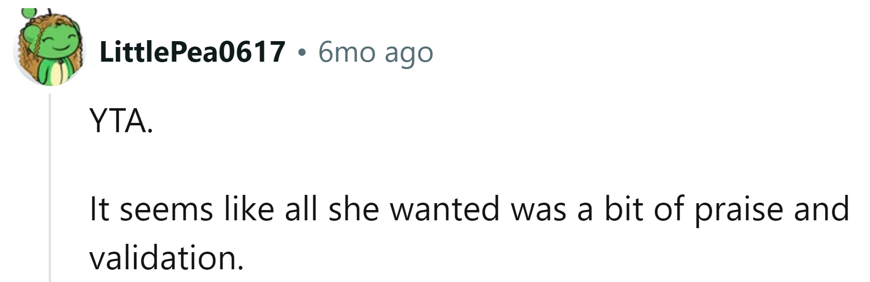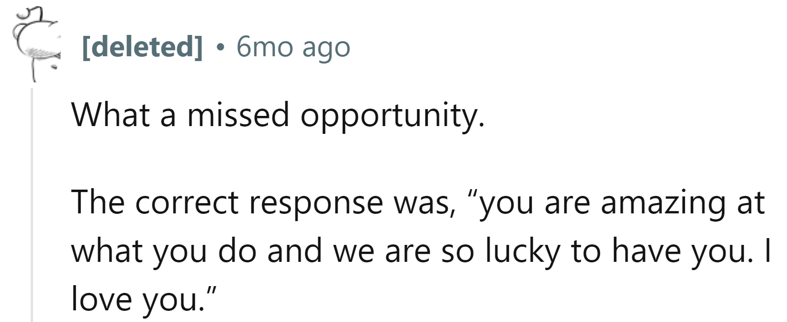 What are your thoughts on this situation? Do you think the OP was out of line for making such an insensitive comment to his wife, or was she overreacting by getting upset?