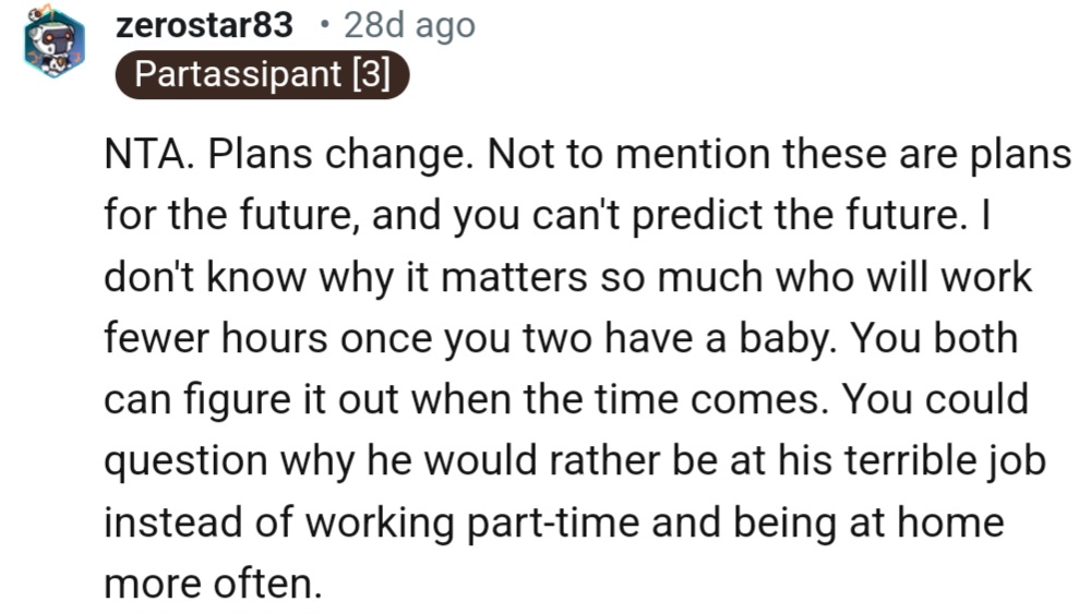 They had it all mapped out: save up, get stable, and then bring little ones into their world. OP would step back to focus on the kids while her husband brought home the corporate bacon. But, as life often does, it threw a curveball.