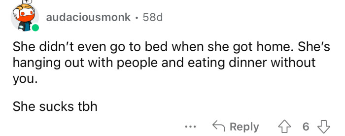 But she didn't go home to sleep; she went home to hang out with their roommates.