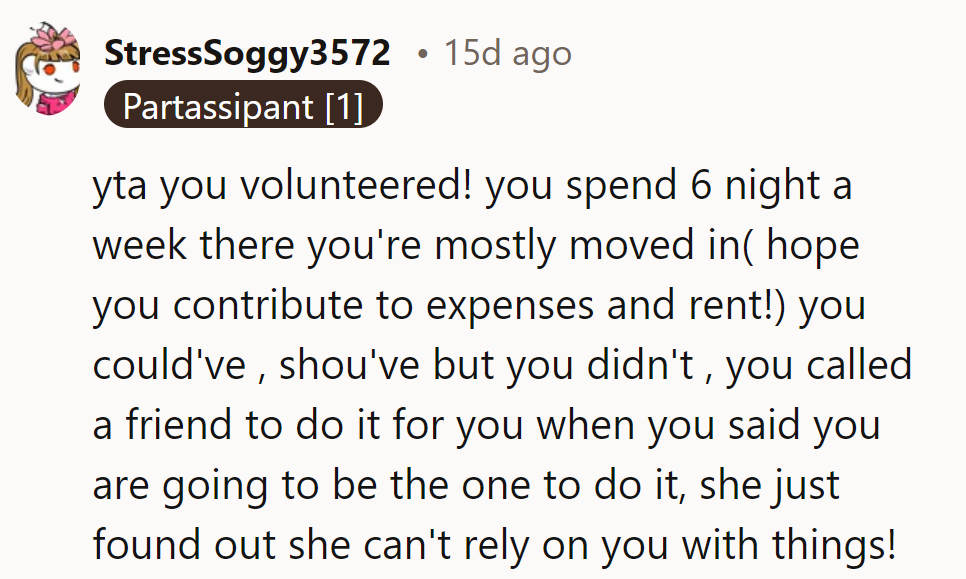 This is vividly illustrated in a Reddit post where a man tasked with feeding his girlfriend's cat while she was away opted to ask a friend to do it instead. Despite his good intentions and the friend's familiarity with both the girlfriend and the responsibility of caring for animals, the girlfriend saw this as a betrayal.