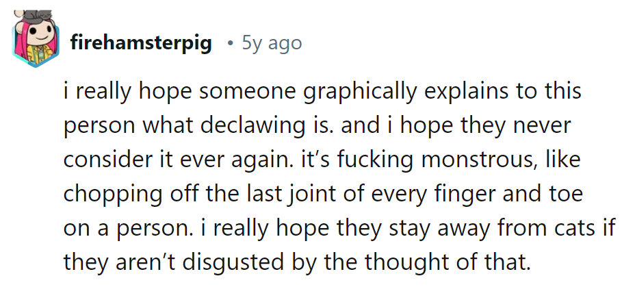 Declawing? More like deplorable. And as for that person? They're the cat's meow of bad decisions.