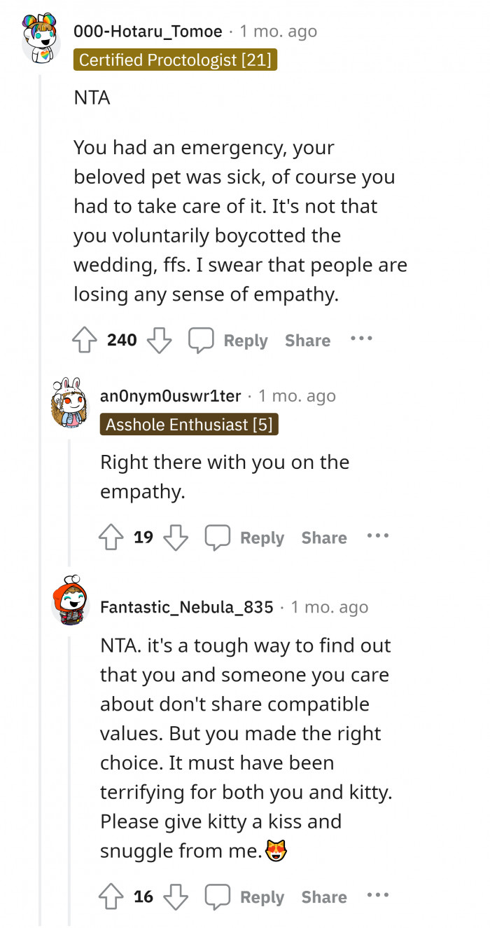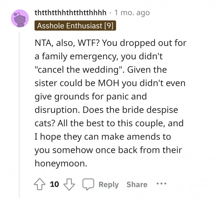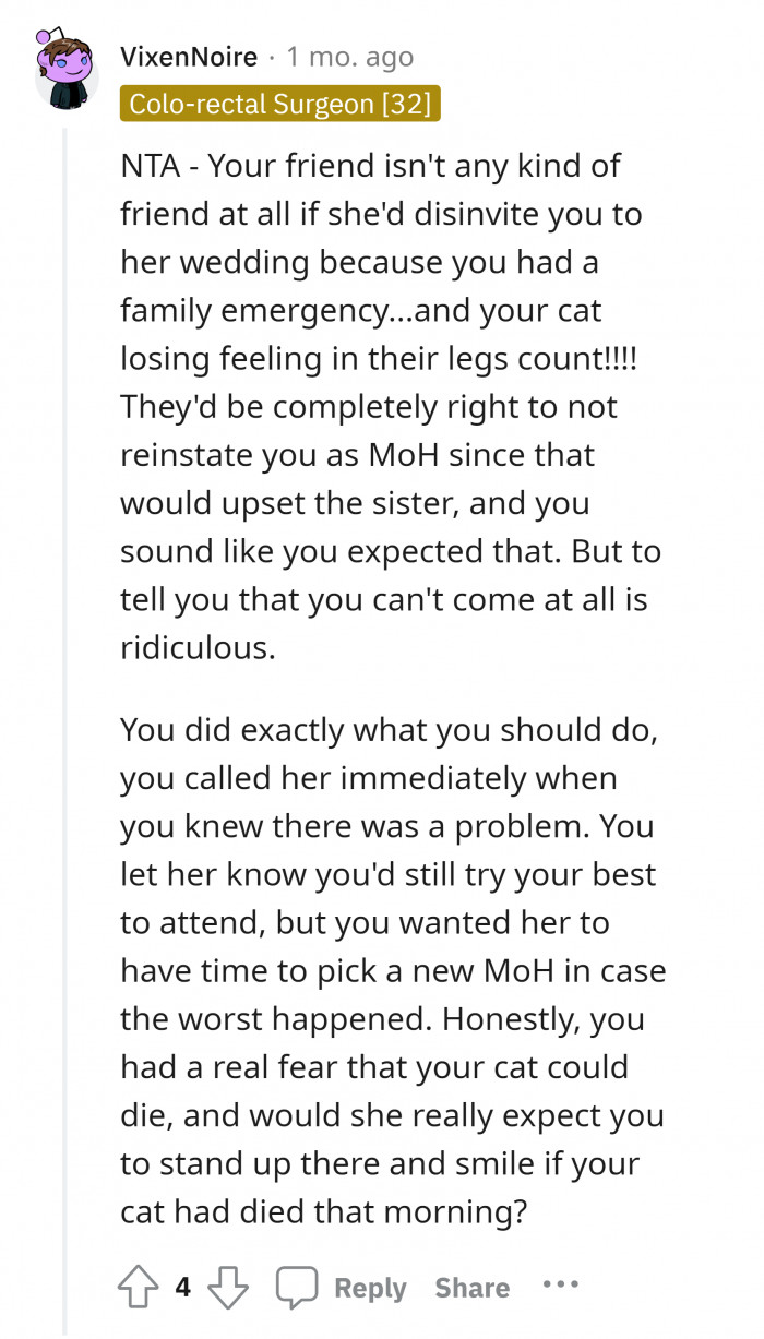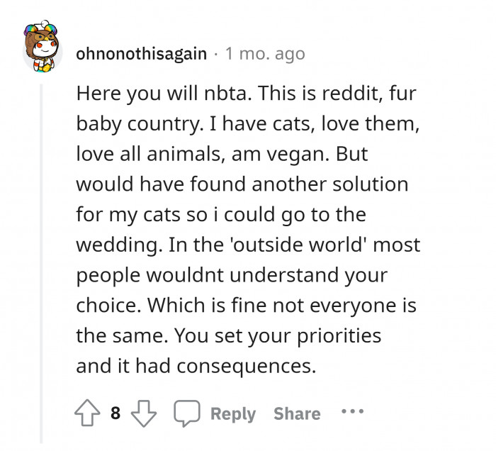 Redditors Rally Behind OP For Choosing Her Cat Over Attending Her Friend's Wedding, Even If She Was The Maid Of Honor