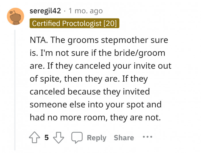 Not a valid reason to take down a wedding invitation where you'll be part of the ceremony.