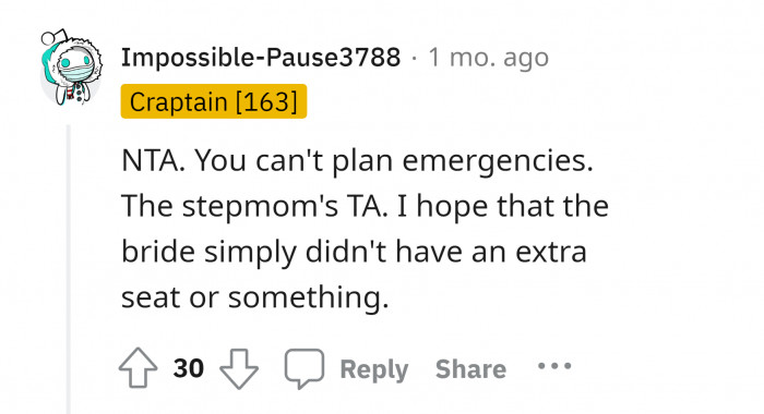 Deciding where to go between two important events is very stressful. I can't blame the response of both parties because of the emergency.