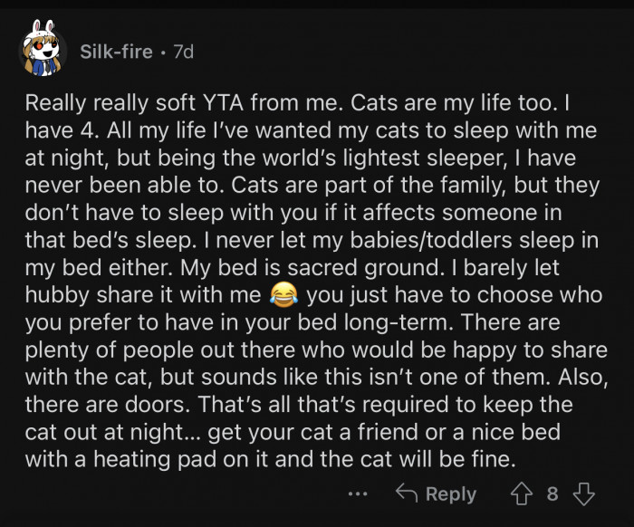 Reddit: r/AmItheA**holeOP tried to keep their cat from getting on the bed but failed.