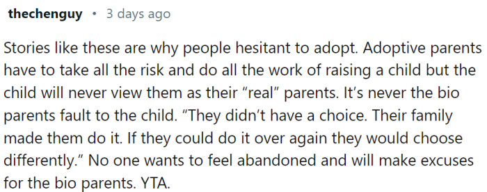 RedditOP was adopted at birth, and found out about it in the worst possible way