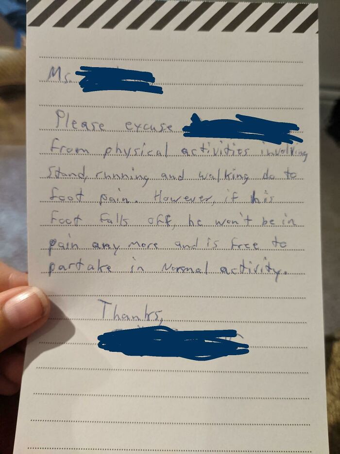 "This Note My Dad Wrote Me To Get Me Out Of PE"