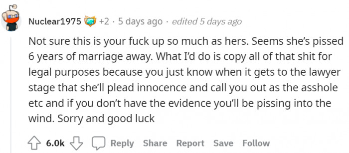 The Redditor later confronted his wife, and she admitted what he already knew.