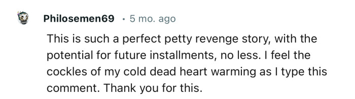 The Reddit community applauded OP for how they handled the situation. Indeed, their ingenious plan is a testament to their expertise.