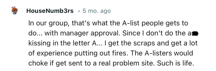 Commenters also lamented how they’ve been facing similar situations with colleagues who have a habit of cherry-picking work. Probably, everyone can learn a thing or two from this post on how to deal with those who enjoy gaming the system.