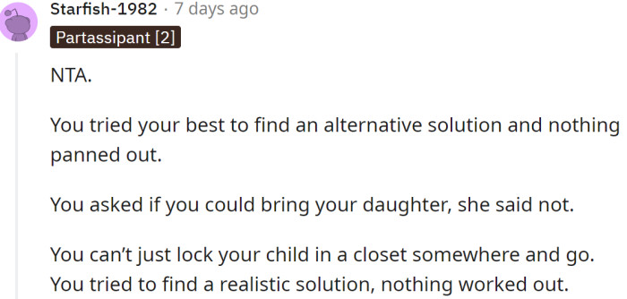 redditShe said her ex-partner would take their daughter so she could go to the wedding: