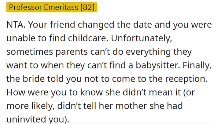 Redditor Asks If She's In The Wrong For Missing Her Best Friend's Child-Free Wedding Because She Couldn't Find A Babysitter