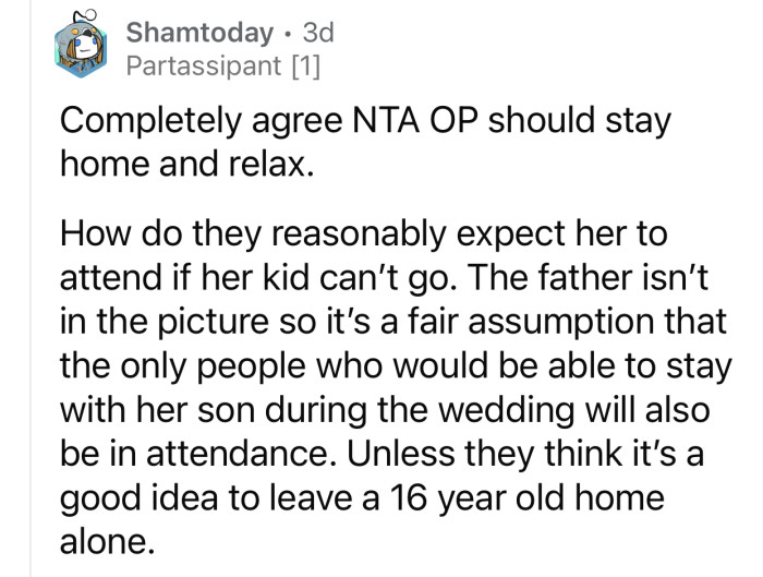 Reddit: r/AmItheA**holeOP was surprised to find out that the "no-child rule" also excluded her 16-year-old son.