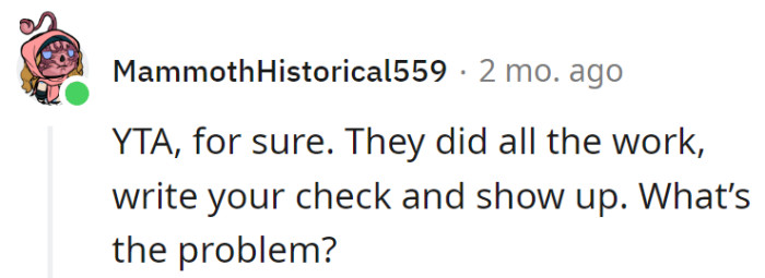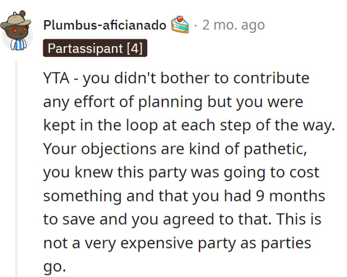 As family ties strained over the unexpected financial demand, the debate now hinges on whether it's justifiable for the youngest child to bear a substantial cost for an event they had limited involvement in orchestrating.