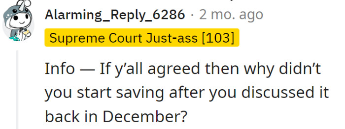 "Why didn't you start saving after you discussed it back in December?"