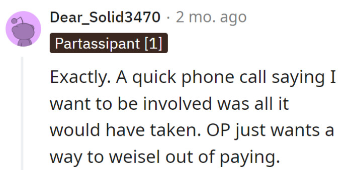 However, the situation took an unexpected turn when, one morning, a group chat exploded with a detailed breakdown of the party's cost—$322 from each sibling. The youngest, who had played a minor role in the planning process, was left in shock, questioning the fairness of the financial burden thrust upon them.