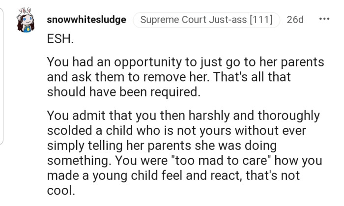OP wasted no time scolding their cousin, which caused her to cry. Unfortunately, OP’s cousin’s parents didn't appreciate their reaction, leading OP to ask the AITA question.