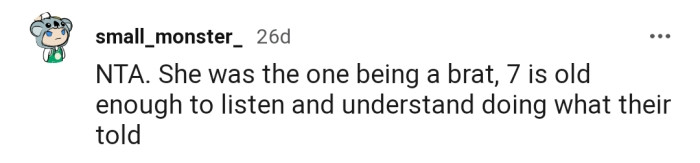 "NTA. Seven is old enough to understand 'no' means 'no.'"