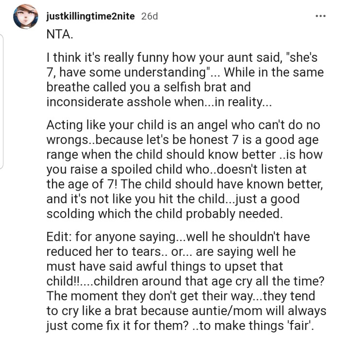 Redditor Gets Heat From Cousin’s Parents After Scolding The Little Girl to Tears