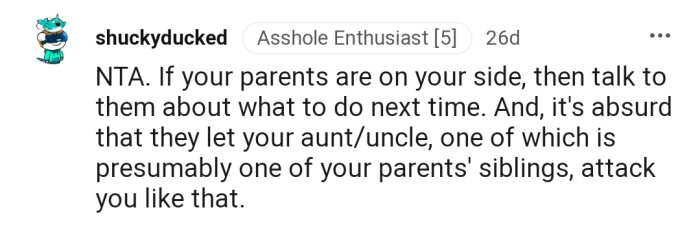 The Reddit community ruled OP out as the AH. Instead, they believe OP’s aunt and uncle were the AHs.
