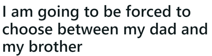 This young man's predicament shows just how complex family dynamics can get. The loyalty he feels for his father and brother is causing him emotional stress, reflecting how deeply our familial connections impact our decision-making. It's important for him to remember that it's okay to prioritize his own emotional well-being in this tough situation.
