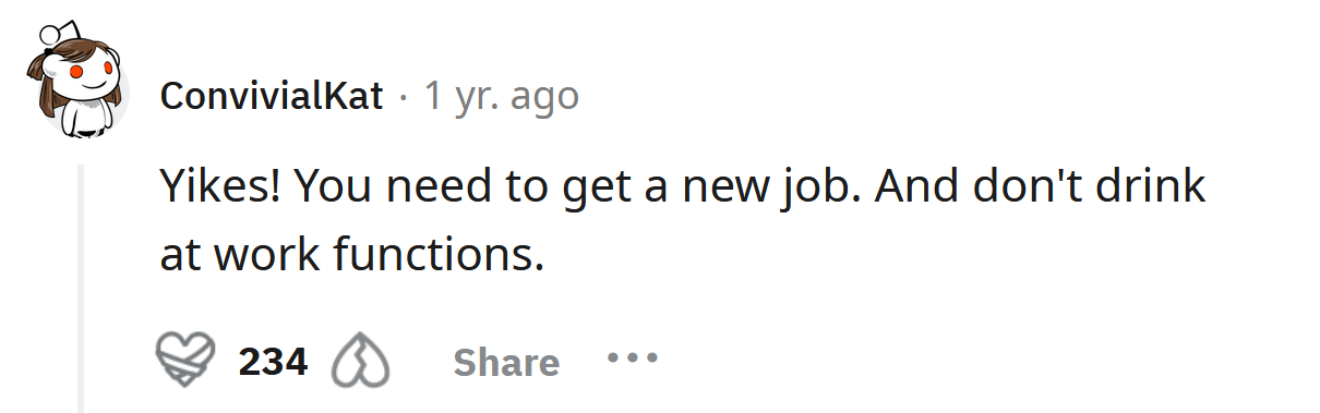 The Redditor isn't sure if she should try to ignore the situation and hope it goes away or if she should start looking for a new job. Keep scrolling to see how people reacted.