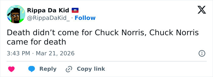 “Chuck Norris didn’t die… He just ghosted the whole planet”