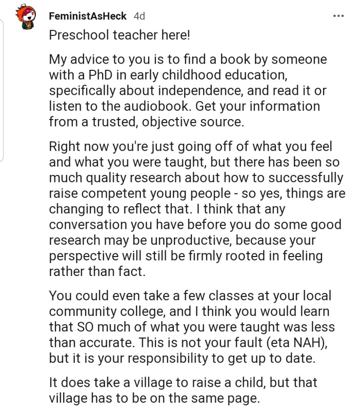 Although OP was sad about the outcome of the conversation, she realized a few faults in her near-perfect style of parenting.