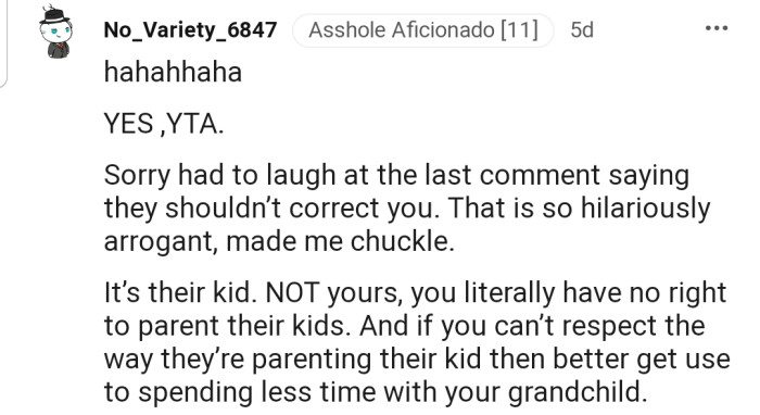 Thankfully, OP took their advice and spoke to her son about the issue. She soon found out he disliked her corrections far more than his wife did.