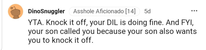"YTA. Knock it off; your DIL is doing fine."