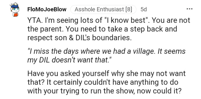"You need to take a step back and respect your son and DIL's boundaries."