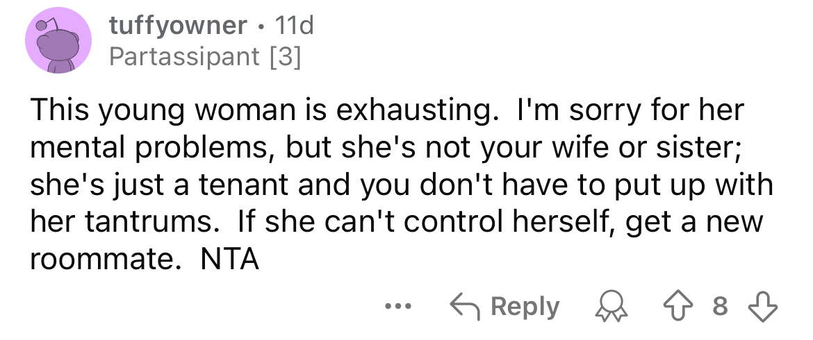 Reddit/Lopsided_Kangaroo_She explained that she is 22 and shares an apartment with her 25-year-old roommate.