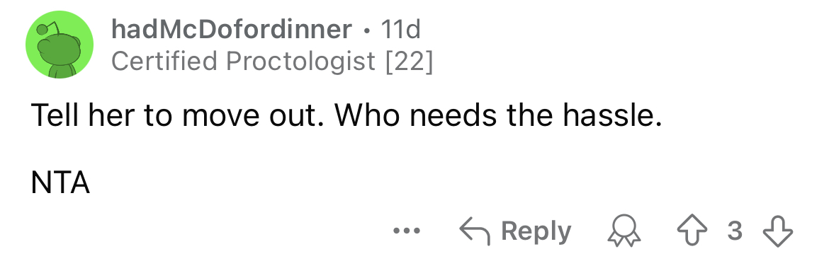 The OP apologized, but it wasn't long before Debbie blew up at her again for letting the kitchen get dirty. The Redditor lost her patience and told Debbie that she could move out if she was going to continue being a "control freak."