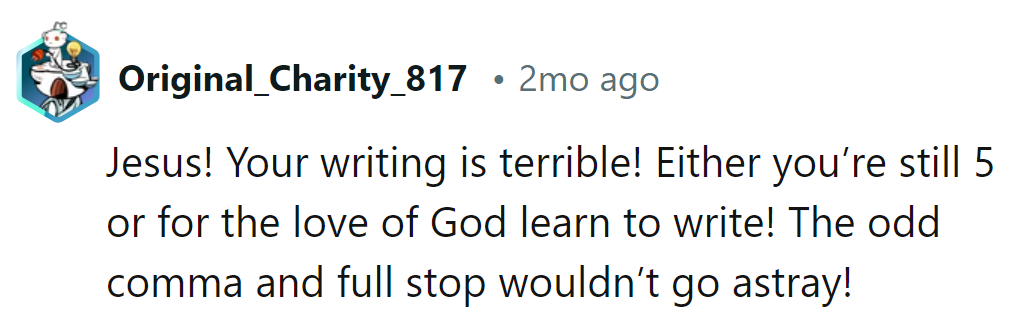 "Either you're still 5, or for the love of God, learn to write!"