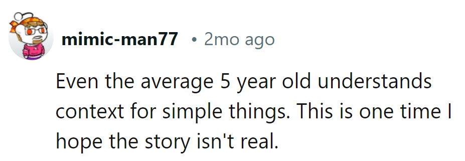 Despite the mom's frustration and threats of grounding, the child simply reminded her of the instructions given, leaving the mom speechless and the stepdad amused. This story highlights the innocent yet rigid adherence to rules that children often exhibit, showcasing the gap between adult expectations and child interpretation.