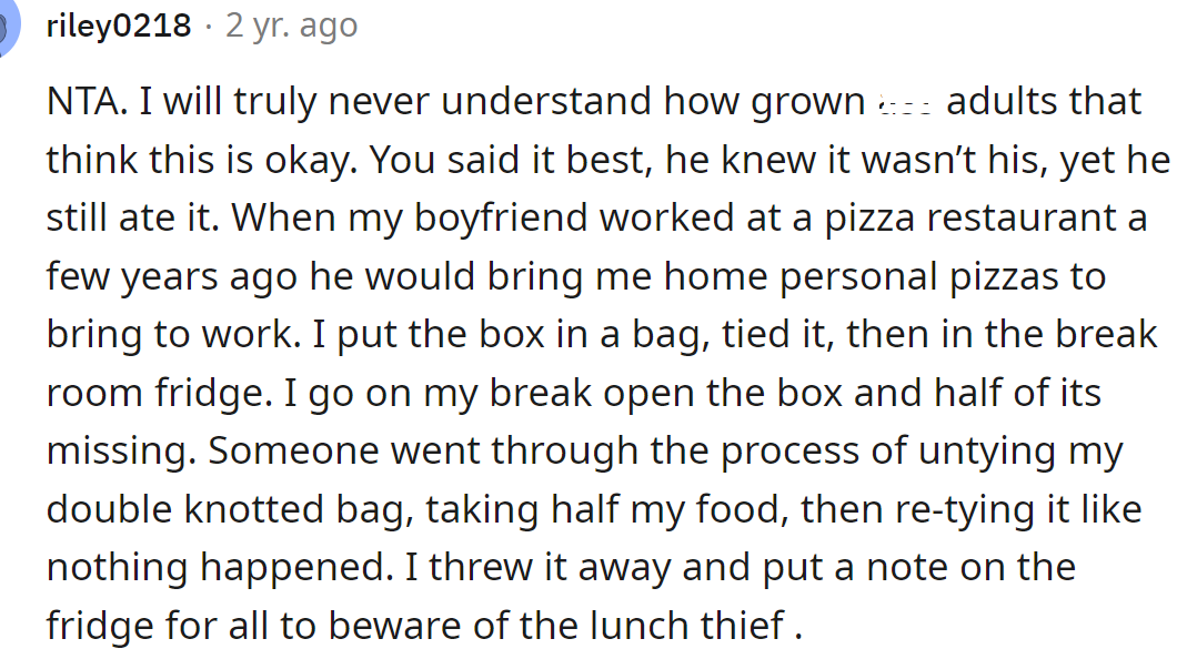 Experts agree that the OP was justified in confronting her coworker who stole her lunch. According to Dr. John Gottman, a renowned marriage researcher, "Setting boundaries is essential in any relationship, including workplace dynamics." It was her lunch, and he had no right to take it. While the OP could have approached the situation with more politeness, as Dr. Pepper Schwartz, a sociologist, notes, "Sometimes, direct confrontation can prevent future transgressions." Humiliation can be a consequence of one's actions, and as Dr. William Doherty, a family therapist, states, "Consequences are necessary for learning; the OP's actions might just teach him a valuable lesson about respect."