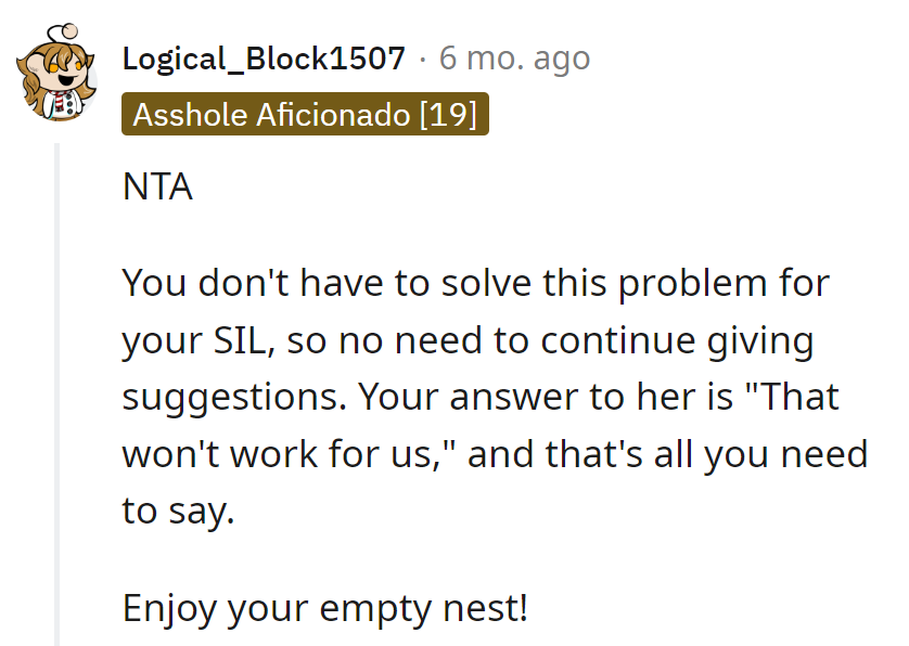 SIL's request is like trying to order room service in someone else's dream house. Time for her to check out of the entitlement suite!
