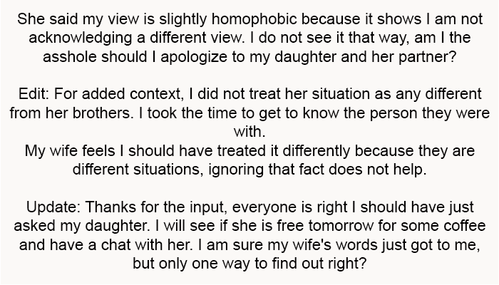 AITA For My Nonchalant Reaction To My Daughter’s Coming Out Announcement (Update)