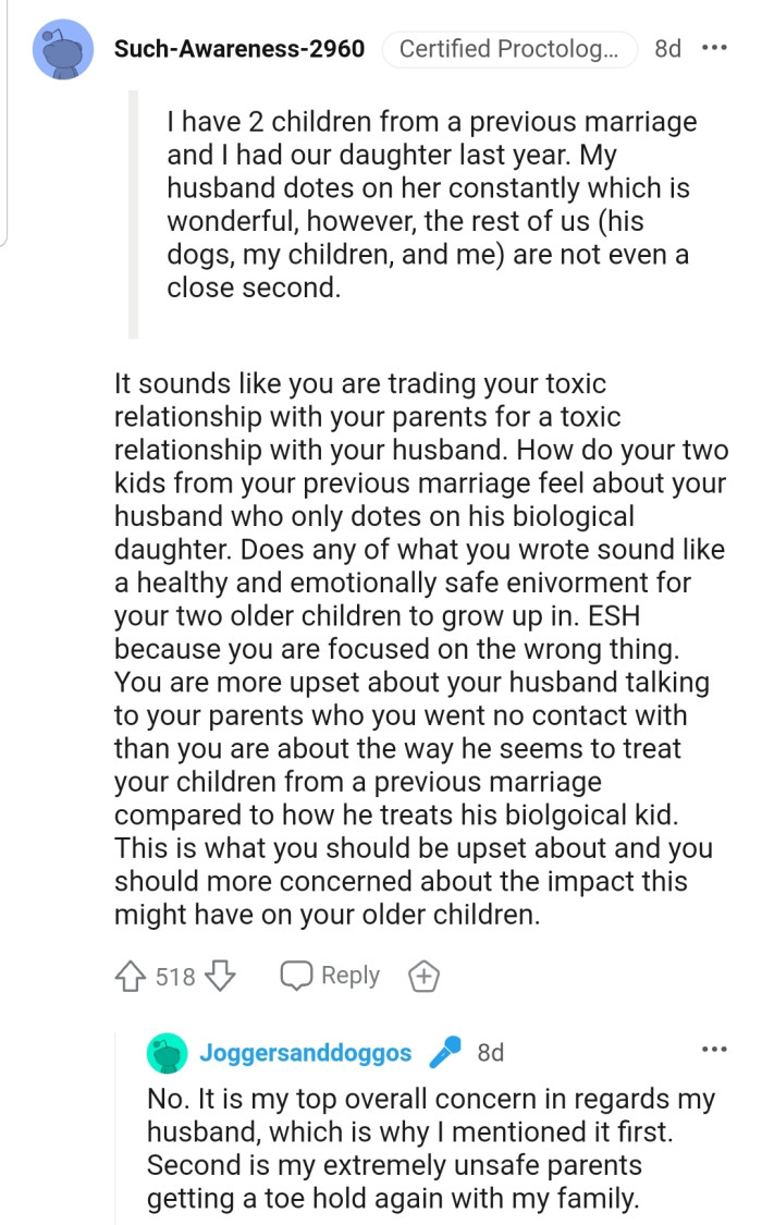 Reddit.comOP explained that her husband is extremely fond of their daughter, but doesn't seem to care much about her and his step-kids
