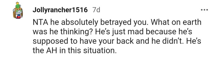 "NTA..He absolutely betrayed you. What on earth was he thinking?"