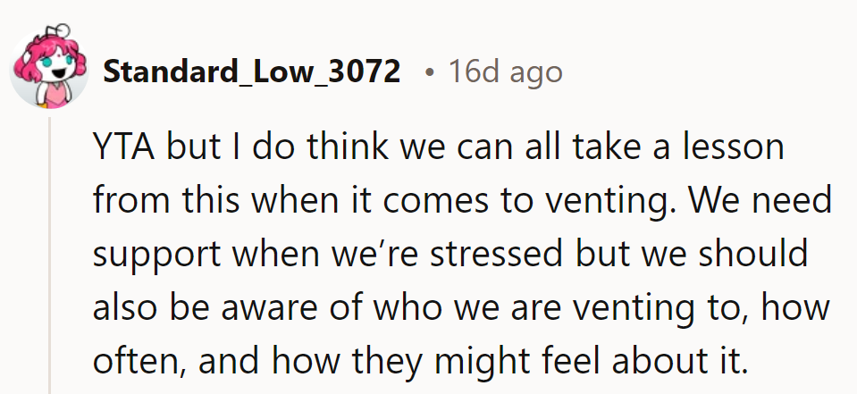 "We can all take a lesson from this when it comes to venting."